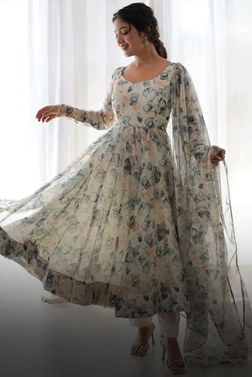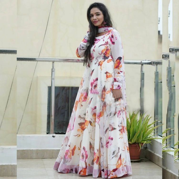FABRICS DETAILKURTI :- GEOURGETT DUPATTA :- GEOURGETT BEUTIFULL FULL GHERA ANARKALI GOWN...